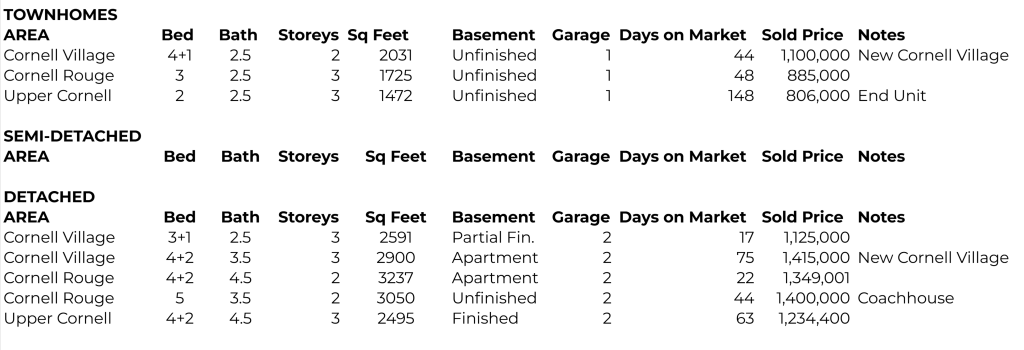December 2025 & January 2026 Real Estate Sold Stats – Cornell, Markham February 3, 2026 Here are the December 2025 & January 2026 Real Estate Sold Figures for the Cornell Community in Markham, Ontario. As Always, no Averages or %’s, Just True Numbers without the Marketing Gimmick or Spin! December 2025 January 2026